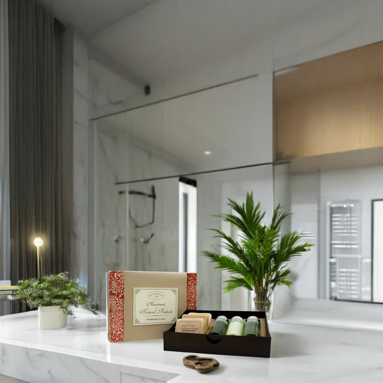 - Savons naturels : Une sélection de savons naturels magnifiquement parfumés, notamment à la citronnelle et d'autres parfums rafraîchissants. Chaque savon est enrichi d'huiles essentielles et d'extraits botaniques pour un nettoyage doux et nourrissant.