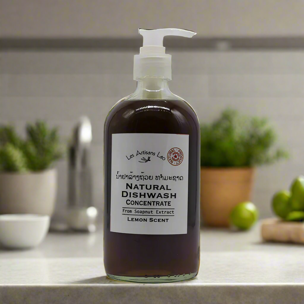 Artisans Lao Concentré Naturel pour Vaisselle à base d'Extrait de Noix de Savon Parfum Citron 450 ml