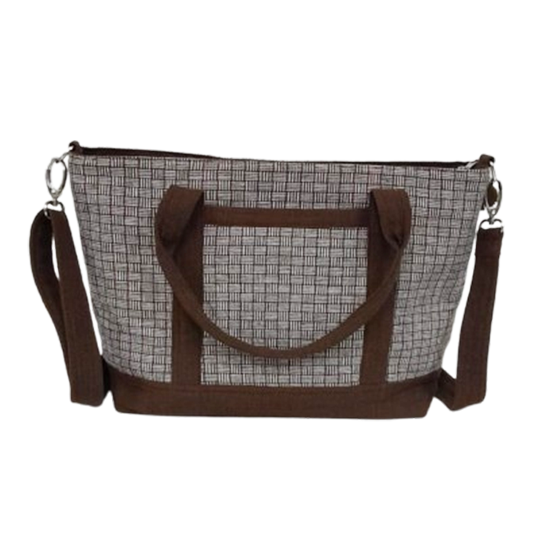 Handmade Brown and White Checkered Tote Bag with Adjustable Strap | 100% Cotton | Made in Laos