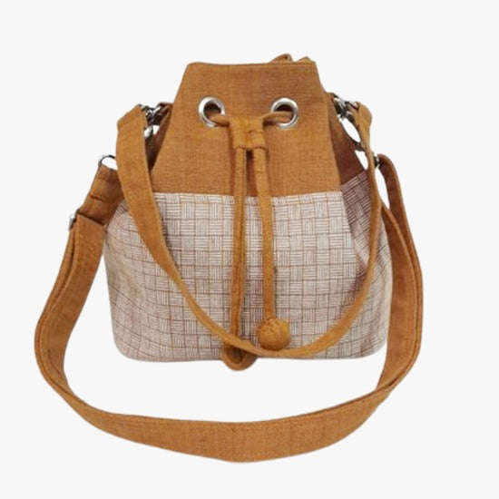 The drawstring closure, reinforced with metal eyelets, ensures your belongings are secure while adding a rustic charm. The long, adjustable shoulder strap provides comfort and convenience, making it perfect for everyday use. Whether you're heading to work, running errands, or enjoying a casual outing, this bag is both functional and fashionable.