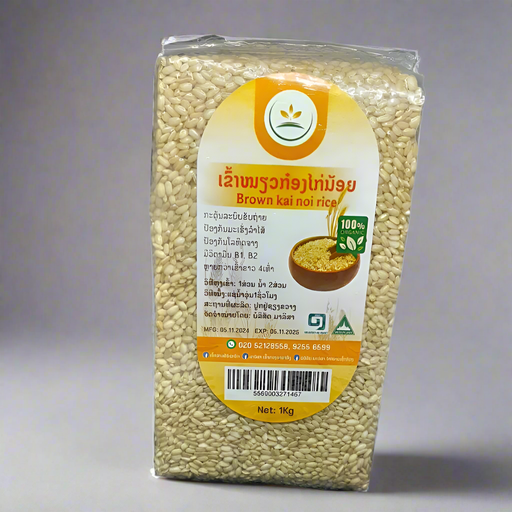 Kai Noi rice is a traditional Lao variety known for its exceptional flavor profile and nutritional density. The brown version retains the nutritious bran layer, providing superior fiber content and a rich, nutty flavor that distinguishes it from ordinary rice varieties.
