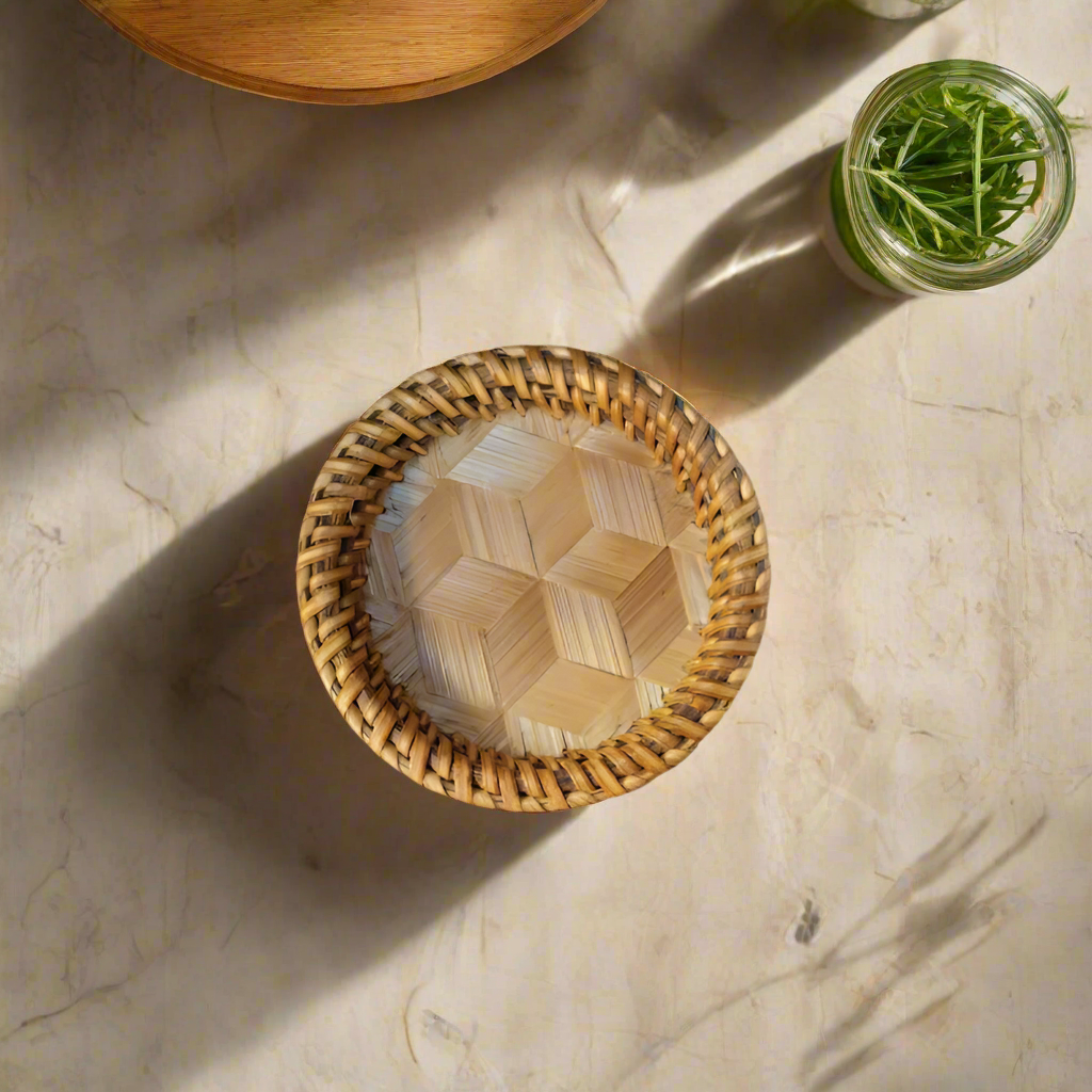 Ajoutez une touche de tradition laotienne à votre table avec ce dessous de verre en bambou magnifiquement conçu, où la fonctionnalité rencontre le charme culturel.
