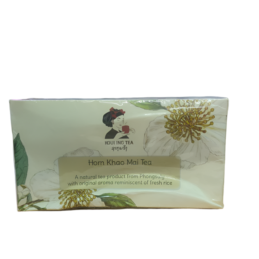 Discover the unique and aromatic experience of Komean Koui Ing Tea's Hom Khao Mai blend, featuring 20 convenient sachets in an eco-friendly paper box. This traditional Lao tea blend combines the distinctive flavors of Koui Ing tea with the subtle fragrance of jasmine rice (Hom Khao Mai), creating a truly authentic Southeast Asian tea experience.