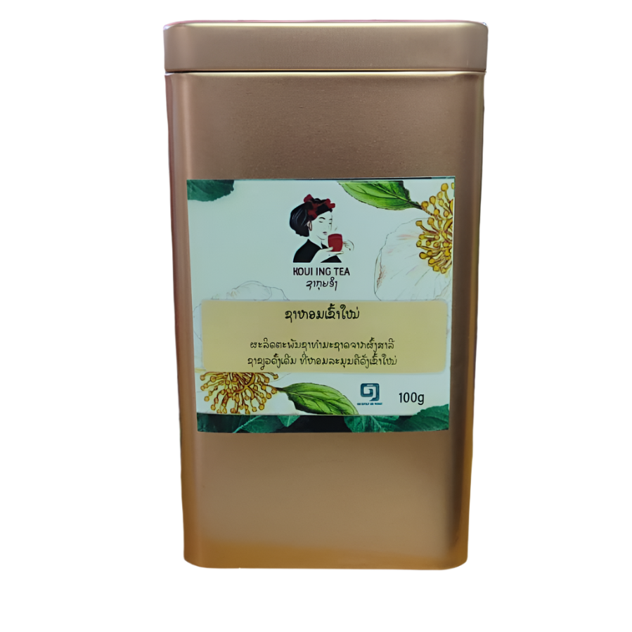 Experience the exceptional quality of Komean Koui Ing Tea, beautifully presented in an elegant bronze metal box. This 100g collection of premium loose leaf tea combines authentic Lao tea craftsmanship with sophisticated packaging, making it perfect for both personal enjoyment and gift giving.