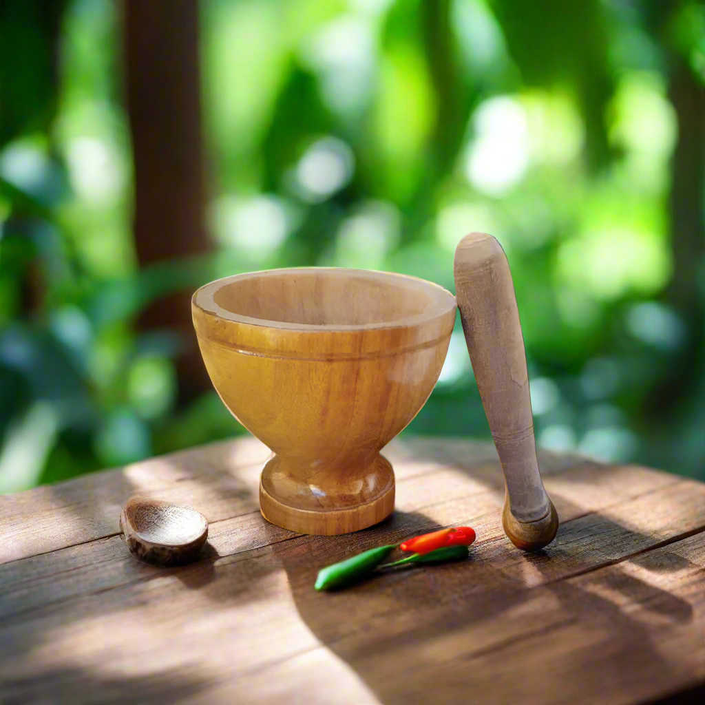 Mortier et pilon miniatures en bois du Laos : un symbole de tradition
