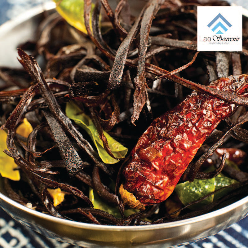Découvrez le goût unique de nos chips de champignons aux feuilles de kaffir frites, une collation traditionnelle fabriquée dans la région pittoresque de Luang Prabang. Fabriquée à partir de champignons locaux et de feuilles aromatiques de combava, cette collation est un véritable témoignage du savoir-faire culinaire du Laos.